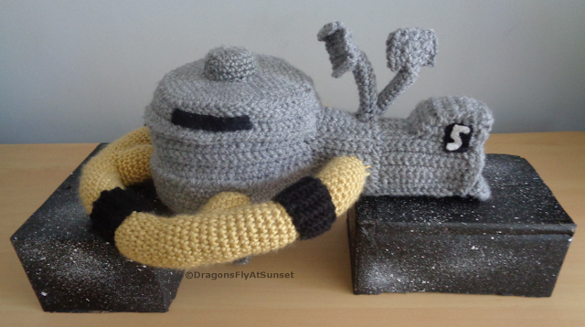 I designed this to fit around my crocheted Thunderbird 3 since they were shown connecting in the 1960s series.