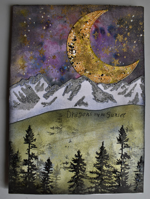 with the ‘Shoot For The Moon’ stamp and die set from Tonic Studios. These were really fun to make! Mixed media is my favourite style of card, and the